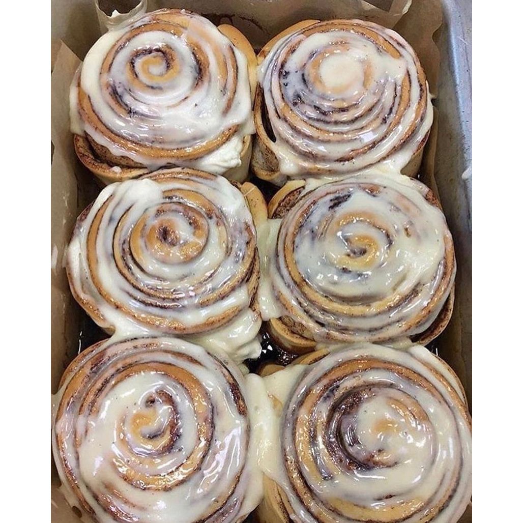 Hecho con nuestra masa suave y tierna y glaseado de queso crema esponjoso, este no es un rollo de canela promedio, es algo que debes probar y un excelente desayuno o delicia nocturna. Viene en una bandeja de 6 rollos.